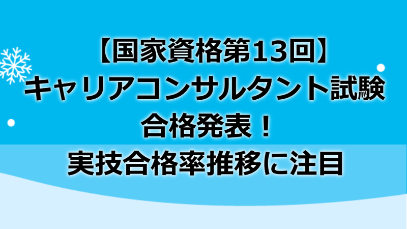 2019年12月13日、第13回国家資格キャリコンサルタント試験の合格発表がありました。