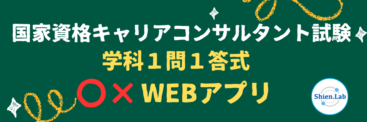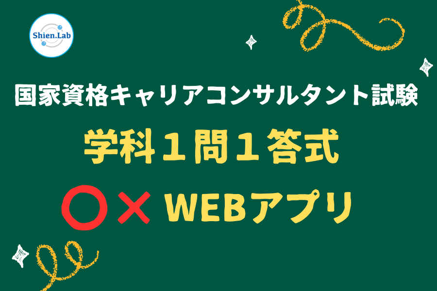 キャリアコンサルタント試験の【学科】勉強は、範囲も広くて大変ですよね。このたび、Shien.Labでは「効果的かつ効率的」な勉強ができるように、学科1問1答式WEBアプリを準備しています!
